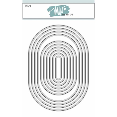 Basic Ovals 2 fra Made With Love indeholder 10 ovale dies. 4 i A6 format og 6 i A7 format. Den største A6 måler 10x14,3 cm og den største A7 er 6x9 cm. Kombiner med Basic Ovals 1 (63478) for at kunne lave helt tynde rammer eller lag.