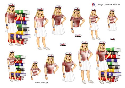 Student pige med bøger, rød bånd, 3d-ark HM Design